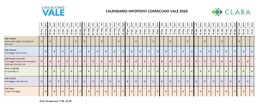 Dal 28 marzo 2026 - InfoPoint ComacchioVale: scarica il calendario